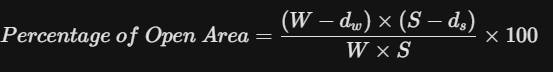 This determines how much water can pass through the mesh. It is calculated based on the diameters of the warp (longitudinal) and shute (transverse) wires and the mesh count.