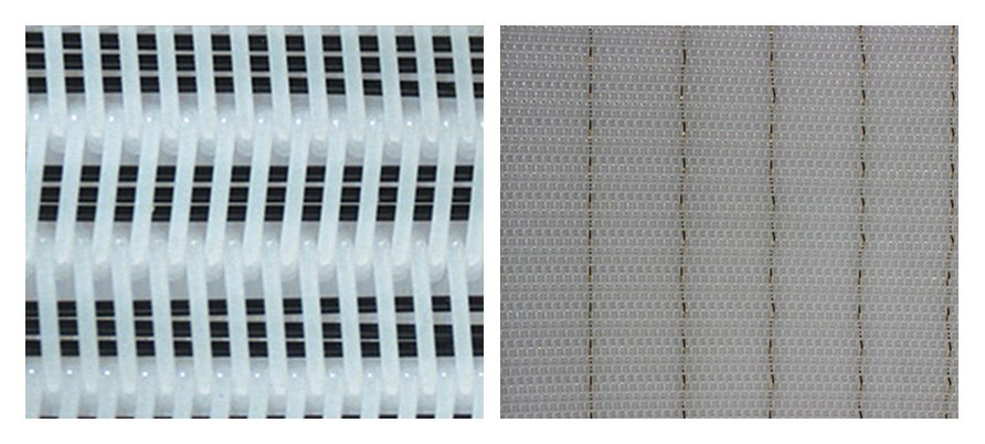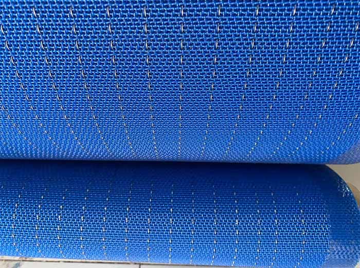 The antistatic conductive belts are woven from polyester monofilament and carbon or copper wire with good conductivity.