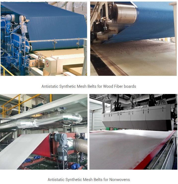 ● Antistatic mesh belt is widely used in airlaid, spunlaid, wetlaid & drylaid nonwoven forming, wood fiberboard, dust-free paper, chemical fiber, and other industries.